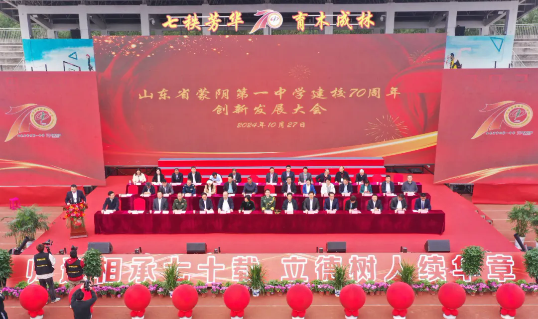 七秩芳华,弦歌不辍;栉风沐雨,砥砺前行。10月27日,山东省蒙阴第一中学举行建校七十周年创新发展大会。蒙阴一中校友、各级领导、嘉宾、县教育系统各学校主要负责人、蒙阴一中师生代表参加大会,清华大学、北京大学等多所知名高校以及全国各地相关部门、单位、团体发来贺信、贺电。