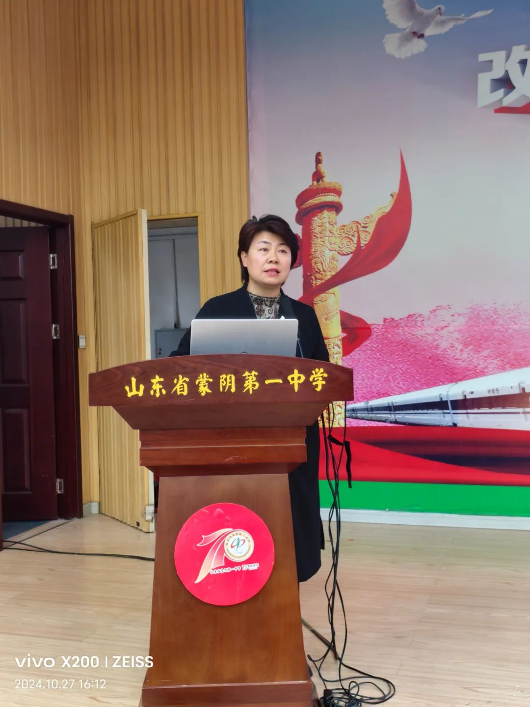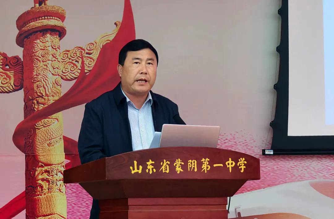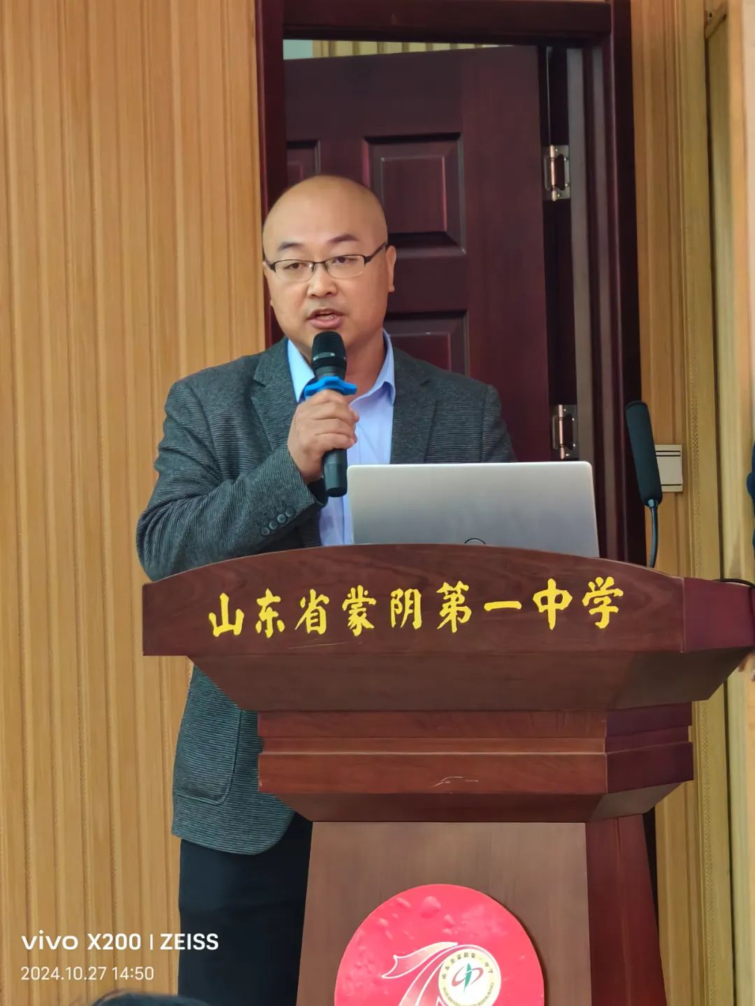蒙阴县委教育工委常务副书记、县教体局党组书记、局长公涛致辞李庆明副校长作蒙阴一中拔尖创新人才培养工作交流。